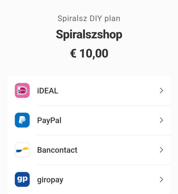 You pay with IDEAL, PayPal, Bankcontact or Giropay